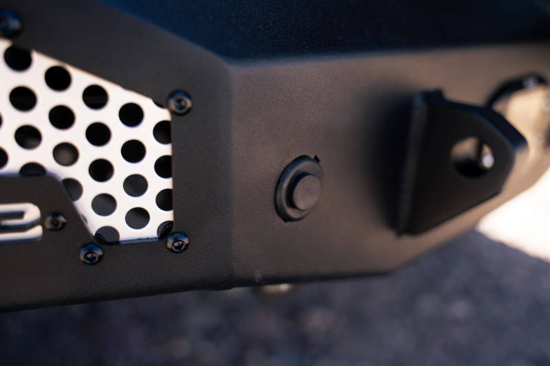 The Bronco MTO Series Rear Bumper is compatible with all Bronco trim levels. We've placed the license plate mount at the side of the bumper, in order to accommodate up to 37-inch wheels and to ensure the tail gate swings open freely. Included with the new license plate bracket are license plate lights. Two 3-inch flush mount pod lights can be mounted towards either side of the bumper. There are 2 clevis mounts that take 3/4-inch D-ring shackles that provide recovery options. The MTO Series bumper includes sensor holes to retain full functionality of the factory backup sensors.