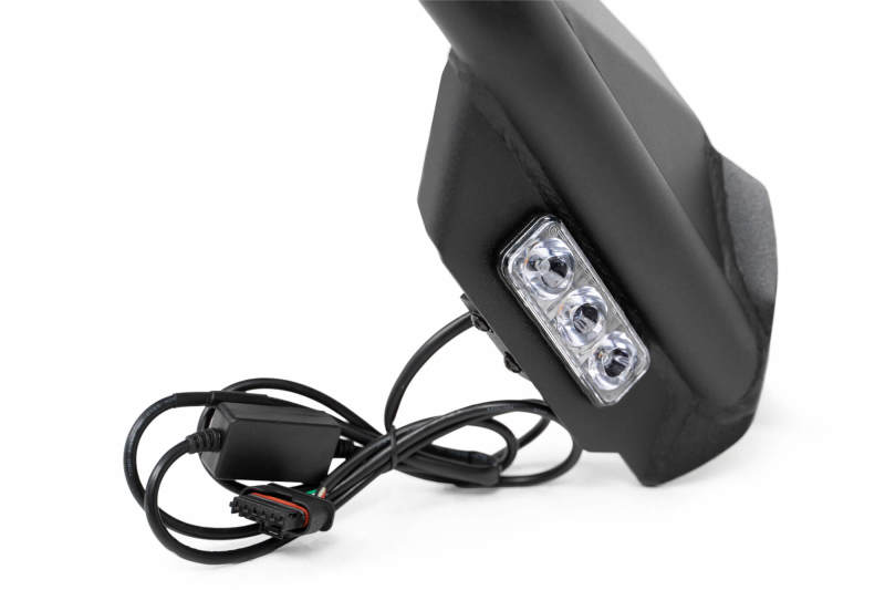 The Spec Series Fender Flares for the Jeep Gladiator offer increased articulation, protection, and an aggressive style. They were designed to open up additional clearance in the wheel well while continuing to offer protection to the body from debris kicked up from the tires. Replacement turn signals are incorporated in the design, and are compatible with the factory connectors so no wiring is required. They function as daytime white running lights, and as amber blinkers when signaling a turn. A rubber seal is included that protects the body and helps to prevent pebbles/dust from building up at the seam. The fenders are finished in a micro-texture powder coat, and the aluminum accent panels are finished in a satin black powder coat. These both protect your vehicle from rust in wet conditions. Please Note: Cutting or grinding down one of the factory fender mounts is required for installation. Painting the resulting small area of raw steel is recommended to prevent rust.