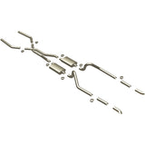 The MagnaFlow 1967-1970 Ford Mustang Street Series Crossmember-Back Performance Exhaust System 15816 brings enhanced engine sound and dyno-proven performance to your 3.3L, 4.1L, 4.7L, 5.0L, 5.8L, 6.4L, 7.0L 1967-1970 Ford Mustang with a healthy helping of our deep, resonant signature exhaust note at Moderate exterior and Mild interior sound levels. Thanks to its durable, corrosion resistant stainless steel design, this Ford Mustang exhaust system will handle whatever tarmac you decide to leave your mark on. This performance exhaust kit features a crossmember-back layout designed to replace your Ford Mustang's exhaust system from the crossmember on back. With its fast-flowing, mandrel bent 2.5in. main piping and 2 Straight-Through mufflers ending in a Dual Split Rear exit with 2.75in. Polished Welded-On Single Wall Turndown Cut Edge tips, your muscle car will be sounding as awesome as it looks. Extensive 3D scanning during development has resulted in a direct-fit design that you can easily install yourself. 15816 is produced using CNC precision robotic manufacturing techniques and is backed by MagnaFlow's limited lifetime construction warranty.